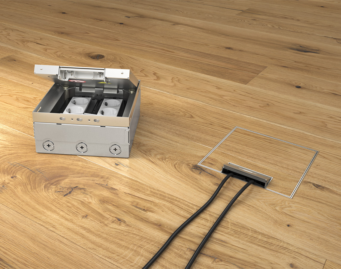 Otras variantes de la familia de productos UDHOME son las cajas de suelo UDHOME-ONE y UDHOME2que combinan en un espacio mínimo un diseño elegante con la máxima flexibilidad. Las cajas de suelo están disponibles con tapas decorativas y con tapas con salida protectora .