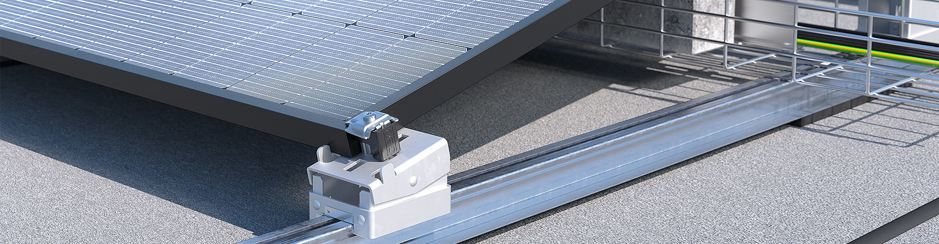 Photovoltaic systems positioned on flat roofs can have a decisive advantage: The PV modules can be mounted independently of a given roof orientation. Our Magic PV Flat Basic system provides even more benefits with a streamlined product range that offers the highest levels of flexibility. The mounting system for flat-roof systems is durable, highly resilient – thanks to the Magic click connection – and can be installed quickly and easily without screws or other tools. The flexible ridge gap permits infinitely variable system design. Magic PV Flat Basic is characterised by an integrated system for cable routing and simultaneous ballasting. This can be achieved using mesh cable tray systems, for example.