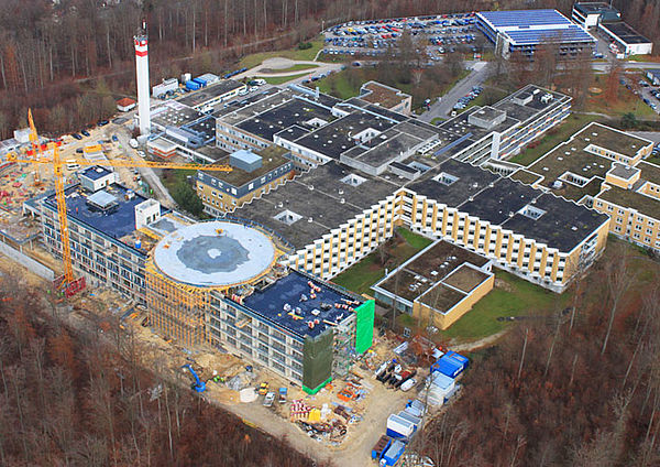 Almost exactly two years elapsed between the ground-breaking ceremony in February 2009 and the official inauguration of the shell at the topping-out ceremony in February 2011. The new ward building will commence operations in mid-2012. The 110 metre-long and 25 metre-wide, six-storey building was added at right angles to an existing ward building. A particular feature of the new building is the helipad on the roof.