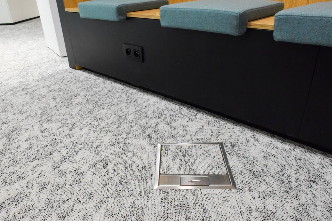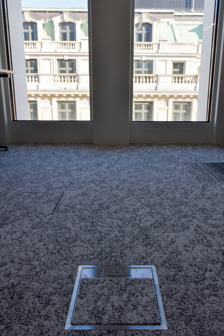Solutions from various manufacturers were tested for the underfloor installations. A choice was eventually made in favour of OBO, as the OBO solutions were able to stand out by having the smallest edge profile. This means that the covers can be integrated even more effectively into the carpet floor. The OBO cassettes stand out through their discreet, elegant design. After their installation, they can barely be seen, meaning that they do not interfere with the ambience of the room.