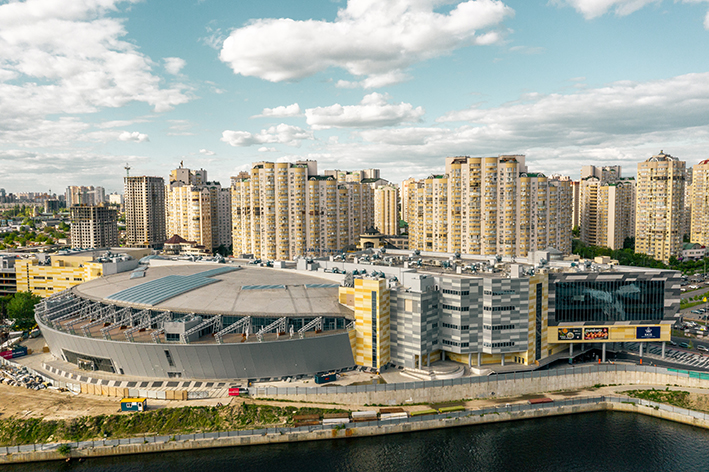 With the River Mall on the left bank of Kyiv, the largest shopping and entertainment center of the town has been built. 160 different stores, Planet Cinema with 10 cinemas and a huge children’s amusement park with labyrinth and trampoline parc can be found on a total area of 140,000 square meters. A summer terrace, which can be entered via the food court, is the highlight of the river mall.