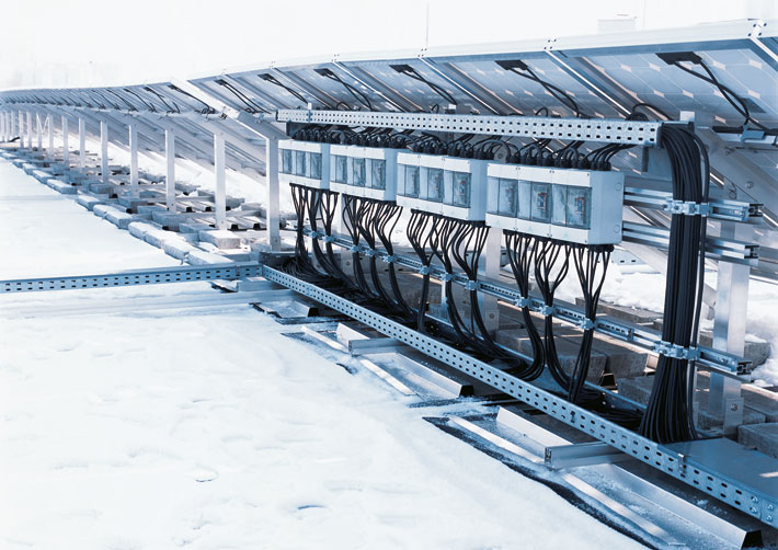 This means that they are ideally suited for a project such as that at SKF. They can carry the weight of the countless cables, which come together in the networking of almost 4,000 solar modules, and route them along difficult courses