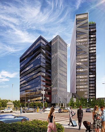 On an area of 36,000 square meters in total, there are office spaces that are designed to a high specification as well as rental apartments. The addition of a sports club, multiple restaurants as well as green spaces around the buildings make this location very special.