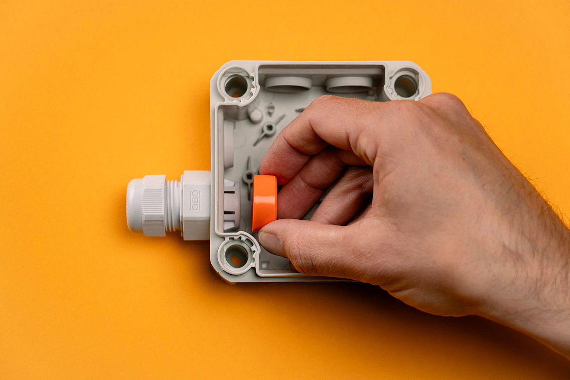 Simplified installation, faster application: the V-TEC PUSH® cable gland makes it possible. Thanks to the patented internal spring mechanism, the cable gland can be inserted into the housing from the outside. This means that no twisting is required for installation: simply insert and you're done!