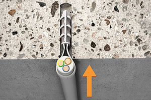 Until now, the Delta-Push® was available as a thumb anchor, threaded anchor with M6 thread and cable tie anchor. All these variants have screwless installation in common – they are simply pressed into the drill hole. The same goes for the loop anchor. After drilling, the loop is placed around the cable and pressed together at the start. The anchor and cable are then inserted into the drill hole until the cable is on the wall. No screws, tools or any other accessories are required.