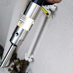 Testing for proper function and electrical continuity can be carried out with the simplest insulation testers (≥ 1 kV) and guarantees maximum system availability –  with no shutdown, disassembly or testing with dangerous pulse voltages required. A detailed isCon® test record can be conveniently called up via a QR code and then completed and saved or submitted.