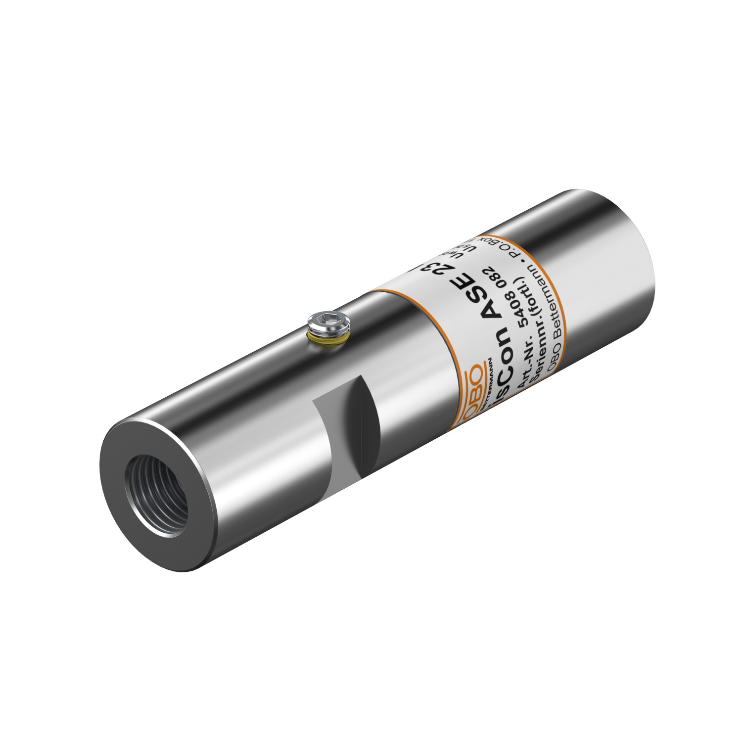OBO Bettermann presents new connection elements for the isCon® conductors with adaptive switching element (ASE). Thanks to the patented ASE technology, a connection between the inner copper conductor and the outer semi-conductive layer of the conductor is created only if lightning strikes. This allows an insulation test according to VDE 0185-305-3 IEC/EN 62305-3) and guarantees the safe functioning of the conductor.