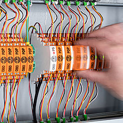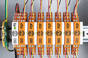 The arresters’ voltage keying prevents the upper and base parts from being wrongly assigned. The arresters are just 12.5 mm wide when installed, and are mounted on a 35 mm DIN rail. They can be earthed via the DIN rail or via a screw terminal.