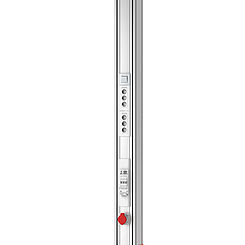 In this 2-compartment aluminium service pole, switching and plug-in devices can be mounted in two installation compartments. An extendable telescopic profile gives it a long extension range (3,015 mm to 4,500 mm). This means the service pole can be used in rooms of very differing heights. The service pole is transparently anodised or powder coated in RAL 9010.