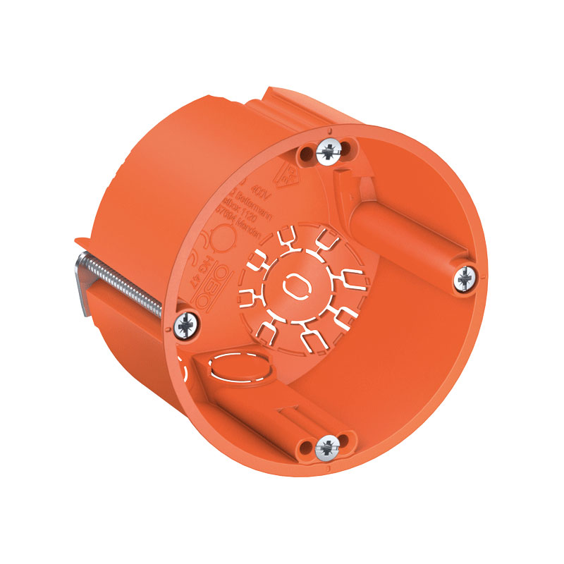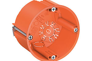 A formula that should also be noted for the OBO flush-mounted boxes is “4x3”. Four screw domes arranged around the OBO flush-mounted boxes, each with three holes, ensure precise alignment and exact fastening of the device each and every time – even if plastering has not been entirely successful.