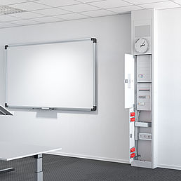 The media and communication pole from OBO Bettermann ensures more flexibility in the electrotechnical installation in classrooms.