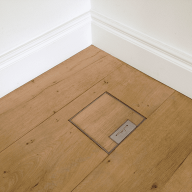 Los conjuntos portamecanismos con altura regulable desacoplados especiales para montaje en pavimento ya se pueden instalarse a partir de una altura de suelo de 90 mm, incluidos los mecanismos.