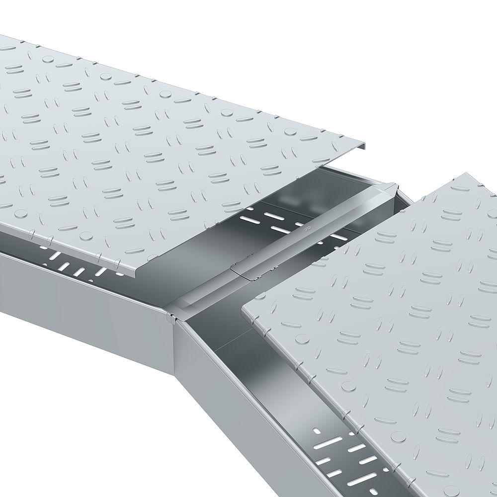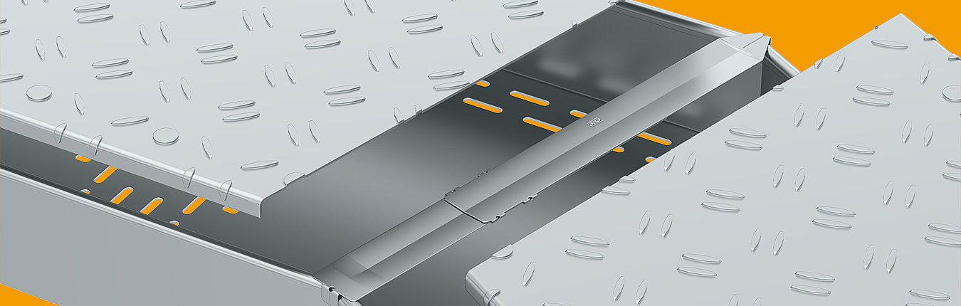 OBO es el único proveedor del mercado que ofrece elementos específicos de protección contra el polvo para pasos entre tapas. Estos elementos se instalan entre la tapa y la bandeja portacables, sin afectar en absoluto a la resistencia al deslizamiento de la tapa BKRS. Al cerrar el espacio que queda entre dos tapas contiguas, protegen eficazmente el interior de la bandeja portacables frente a la entrada de suciedad, polvo, cuerpos extraños o partículas de soldadura. Gracias a sus múltiples posibilidades de ajuste, estos elementos pueden adaptarse a prácticamente cualquier situación de montaje. Incluso en tapas cortadas en ángulo (entre 1° y 90°), el sistema de protección se mantiene eficaz.