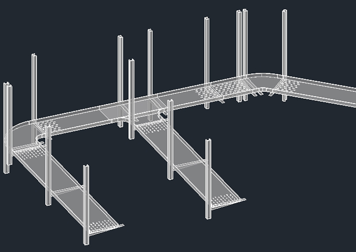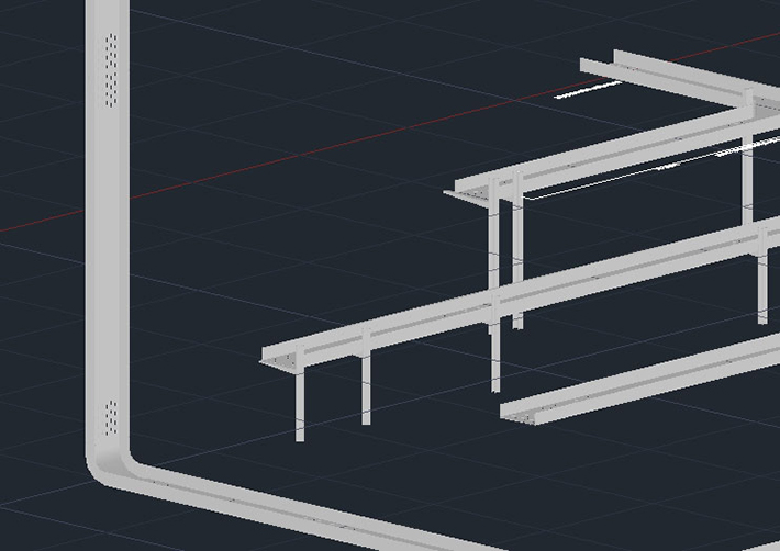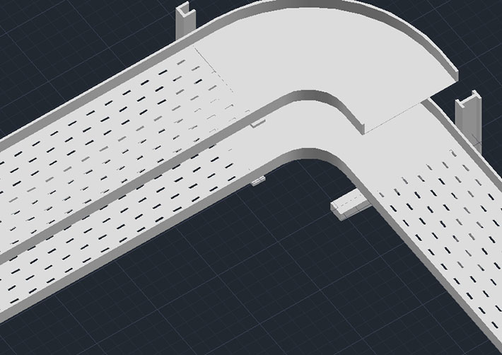 Con el módulo gratuito para AutoCAD pueden integrarse fácilmente modelos en 3D de bandejas portacables OBO y material de montaje, para obtener un plano profesional de manera automática. Los componentes generados pueden verse en ordenadores en los que no está instalado OBO Construct KTS CAD.