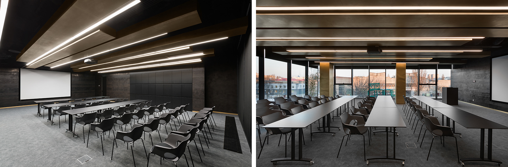 Los espacios de oficinas tenían que ser cómodos, las salas de la academia tenían que ser innovadoras y de diseño futurista. Para crear estas atmósferas se necesitan soluciones luminosas especiales, tecnología moderna y muchas otras instalaciones eléctricas. Las unidades portamecanismos GES de OBO se encargan de la línea ideal de electricidad y datos. Suministran electricidad y conexión de datos a través del suelo a los puestos de trabajo y otros puntos de la habitación.
