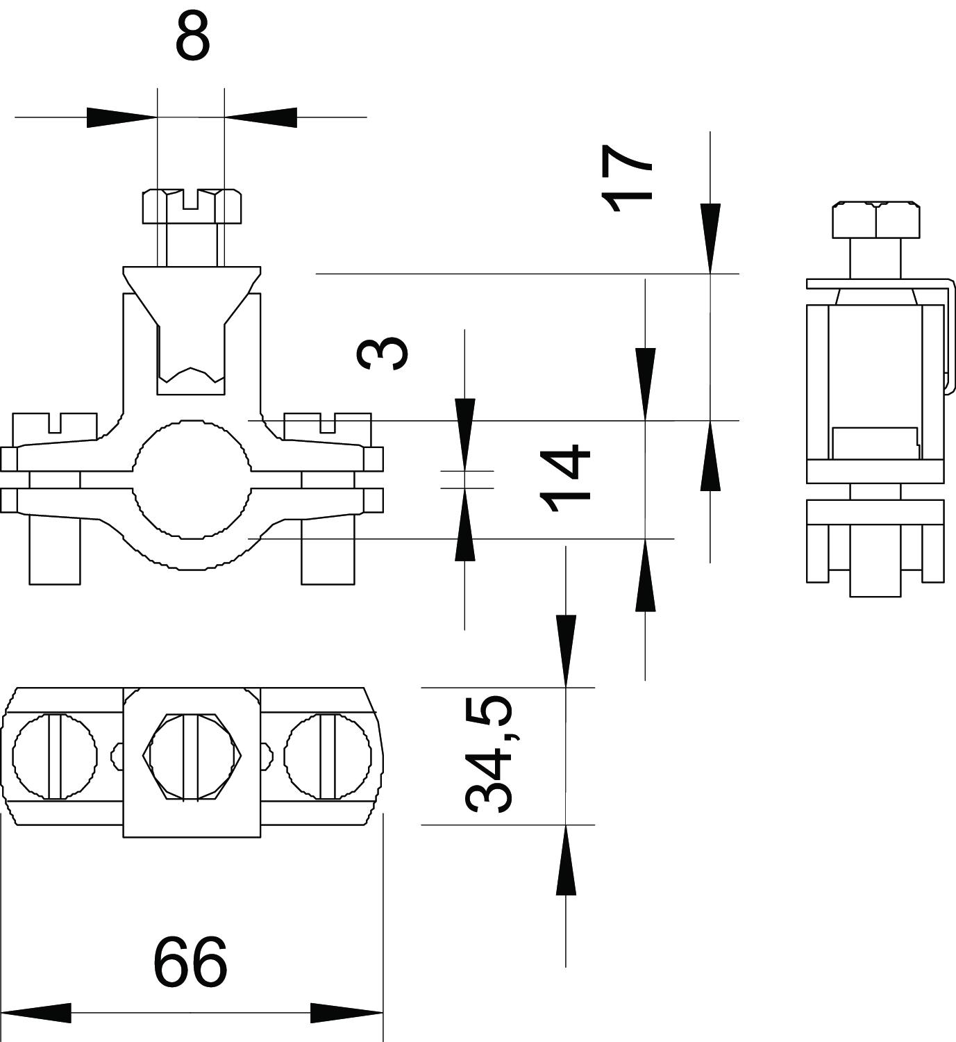 Dimensión 1" Huella de CO2 (GWP) Cradle-to-Gate 0,3315 kg CO2e / 1 Unidad Material Cinc colado a presión Medida A 66 mm Medida D 34,5 mm Medida X 3 mm Número de conductores 1 Rango de sujeción D 1 Rango de sujeción D máx. 34,5 mm Rango de sujeción D mín. 31,5 mm Sección transversal del cable a conectar máx. 35 mm² Superficie electrozincado - Todos los tipos