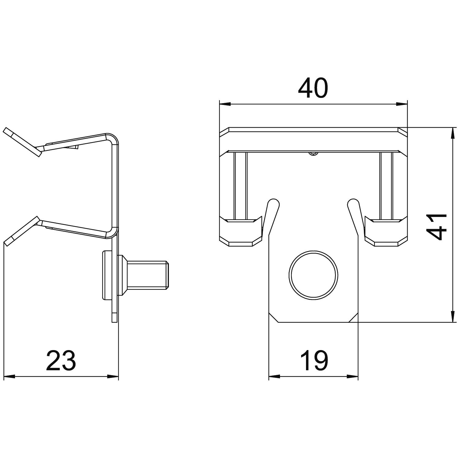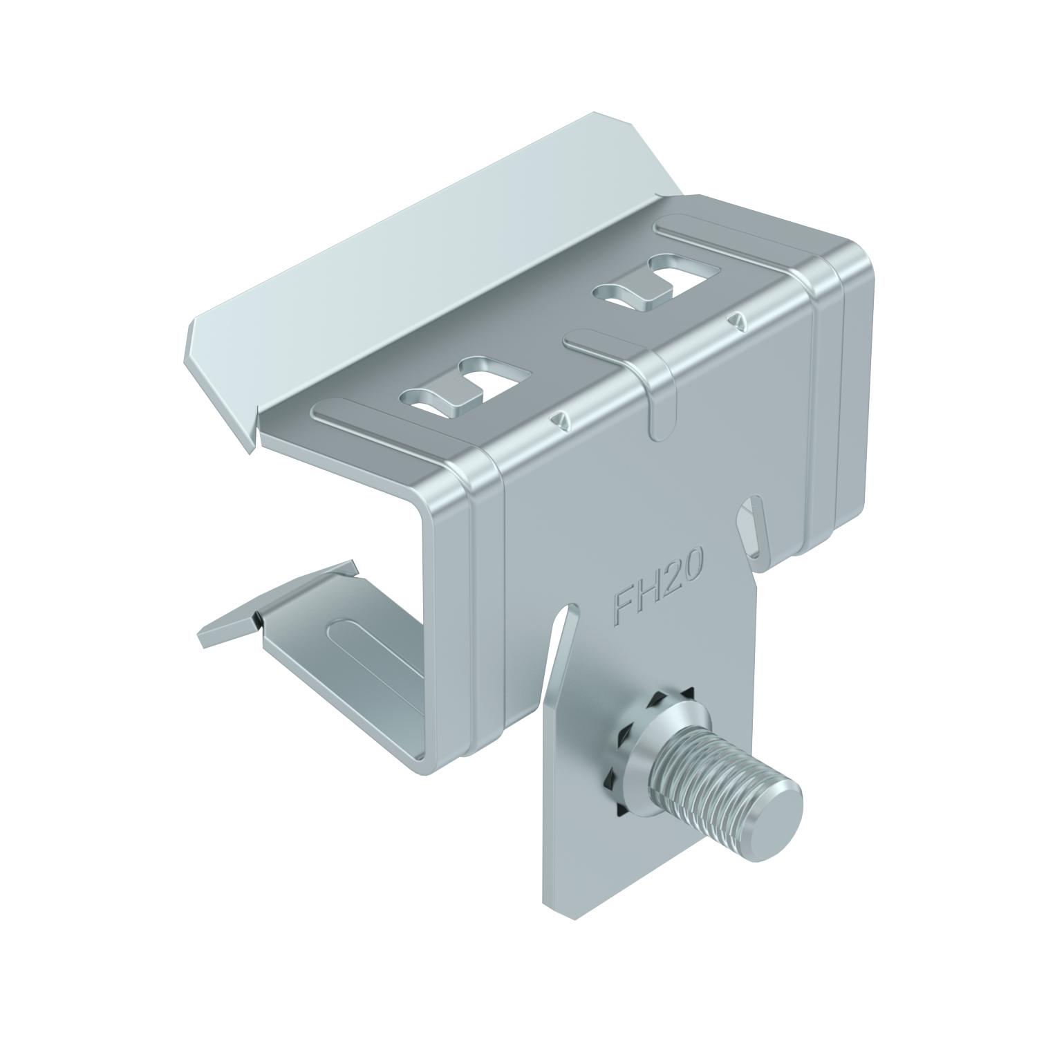 Descripción de productoFijación a viga con perno roscado M6 en el lateral para soluciones de montaje personalizadas. Fijación a vigas de acero mediante golpe de martillo.