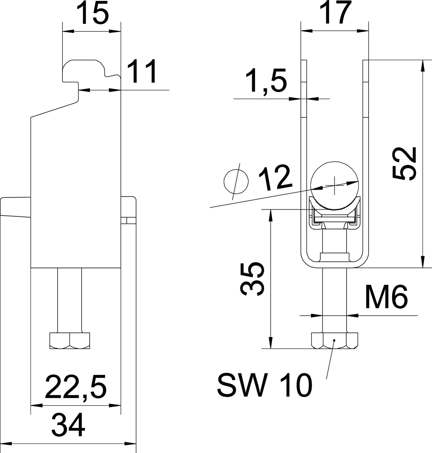 Accesorio de material Acero Accesorio de superficie Galvanizado en caliente Altura 52 mm Ancho 17 mm Ancho de ranura 10 mm Calidad de material de la bandeja Polipropileno Con bandeja de plástico sí Con contramediacaña no Dimensión 08-12mm Espesor de chapa 1,5 mm Huella de CO2 (GWP) Cradle-to-Gate 0,1329 kg CO2e / 1 Unidad Libre de halógenos sí Longitud 22,5 mm Longitud, dimensiones exteriores 34 mm Material Acero Material de la bandeja Plástico Máx. Par de apriete 3 Nm Medida A 22,5 mm Medida B 17 mm Medida C 34 mm Medida G (mm) M6 Medida H 52 mm Medida L 47 mm Medida t 1,5 mm Modo de montaje Perfiles en C Número de cables / tubos 2 Para carriles con ancho de ranura (con intervalo) máx. 12 mm Para carriles con ancho de ranura (con intervalo) mín. 11 mm Para diámetro de tubo máx. 12 mm Para diámetro de tubo mín. 8 mm Rango de sujeción D máx. 12 mm Rango de sujeción D mín. 8 mm Rosca M6 Superficie Galvanizado por inmersión en caliente - Todos los tipos