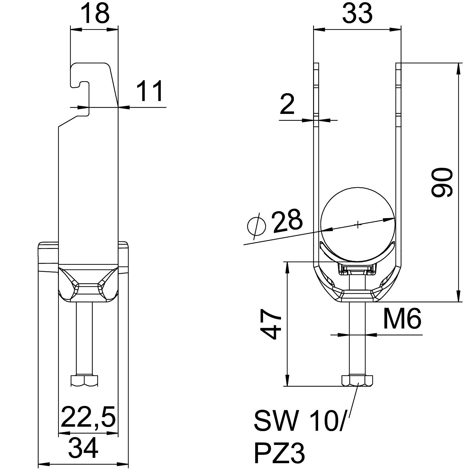 Descripción de productoAbrazadera sobre perfil con base U, mediacaña de plástico de polipropileno. Para el montaje vertical y horizontal de 2 cables individuales en perfil tipo C. Para ancho de ranura de 18 - 22 mm. Con tornillo de 1 paso en la mediacaña, cabeza de tornillo hexagonal universal SW10, con ranura y ranura en cruz. Adecuado para montaje en zonas interiores y exteriores. Es conveniente separar varios cables mediante cañas dobles. Se recomienda el uso de una contra-caña.