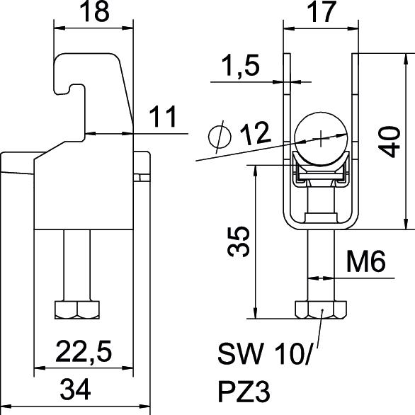 Descripción de productoAbrazadera sobre perfil con base U, mediacaña de plástico de polipropileno. Para el montaje vertical y horizontal de 1 cable individual en perfil tipo C. Para ancho de ranura de 18 - 22 mm. Con tornillo de 1 paso en la mediacaña, cabeza de tornillo hexagonal universal SW10, con ranura y ranura en cruz. Adecuado para montaje en zonas interiores y exteriores. Se recomienda el uso de una contra-caña.