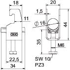 Descripción de productoAbrazadera sobre perfil con base U, mediacaña de plástico de polipropileno. Para el montaje vertical y horizontal de 1 cable individual en perfil tipo C. Para ancho de ranura de 18 - 22 mm. Con tornillo de 1 paso en la mediacaña, cabeza de tornillo hexagonal universal SW10, con ranura y ranura en cruz. Adecuado para montaje en zonas interiores y exteriores. Se recomienda el uso de una contra-caña.