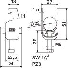 Accesorio de material Acero Accesorio de superficie Galvanizado en caliente Altura 51 mm Ancho 27 mm Ancho de ranura 10 mm Calidad de material de la bandeja Polipropileno Con bandeja de plástico sí Con contramediacaña no Dimensión 16-22mm Espesor de chapa 1,5 mm Huella de CO2 (GWP) Cradle-to-Gate 0,0917 kg CO2e / 1 Unidad Libre de halógenos sí Longitud 22,5 mm Longitud, dimensiones exteriores 34 mm Material Acero Material de la bandeja Plástico Máx. Par de apriete 3 Nm Medida A 22,5 mm Medida B 27 mm Medida C 34 mm Medida G (mm) M6 Medida H 51 mm Medida L 35 mm Medida t 1,5 mm Modo de montaje Perfiles en C Número de cables / tubos 1 Para carriles con ancho de ranura (con intervalo) máx. 22 mm Para carriles con ancho de ranura (con intervalo) mín. 18 mm Para diámetro de tubo máx. 22 mm Para diámetro de tubo mín. 16 mm Rango de sujeción D máx. 22 mm Rango de sujeción D mín. 16 mm Rosca M6 Superficie Galvanizado por inmersión en caliente - Todos los tipos