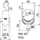Descripción de productoAbrazadera sobre perfil con base U, mediacaña de plástico de polipropileno. Para el montaje vertical y horizontal de 1 cable individual en perfil tipo C. Para ancho de ranura de 18 - 22 mm. Con tornillo de 1 paso en la mediacaña, cabeza de tornillo hexagonal universal SW10, con ranura y ranura en cruz. Adecuado para montaje en zonas interiores y exteriores. Se recomienda el uso de una contra-caña.
