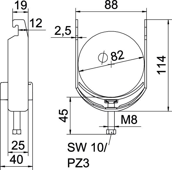 Accesorio de material Acero Accesorio de superficie Galvanizado en caliente Altura 114 mm Ancho 88 mm Ancho de ranura 10 mm Calidad de material de la bandeja Polipropileno Con bandeja de plástico sí Con contramediacaña no Dimensión 76-82mm Espesor de chapa 2,5 mm Huella de CO2 (GWP) Cradle-to-Gate 0,3788 kg CO2e / 1 Unidad Libre de halógenos sí Longitud 25 mm Longitud, dimensiones exteriores 40 mm Material Acero Material de la bandeja Plástico Máx. Par de apriete 5 Nm Medida A 25 mm Medida B 88 mm Medida C 40 mm Medida G (mm) M8 Medida H 114 mm Medida L 45 mm Medida t 2,5 mm Modo de montaje Perfiles en C Número de cables / tubos 1 Para carriles con ancho de ranura (con intervalo) máx. 22 mm Para carriles con ancho de ranura (con intervalo) mín. 18 mm Para diámetro de tubo máx. 82 mm Para diámetro de tubo mín. 76 mm Rango de sujeción D máx. 82 mm Rango de sujeción D mín. 76 mm Rosca M8 Superficie Galvanizado por inmersión en caliente - Todos los tipos
