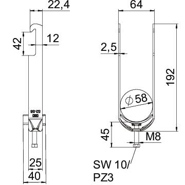Accesorio de material Acero Accesorio de superficie Galvanizado en caliente Altura 192 mm Ancho 64 mm Ancho de ranura 10 mm Calidad de material de la bandeja Polipropileno Con bandeja de plástico sí Con contramediacaña no Dimensión 52-58mm Espesor de chapa 2,5 mm Huella de CO2 (GWP) Cradle-to-Gate 0,6465 kg CO2e / 1 Unidad Libre de halógenos sí Longitud 25 mm Longitud, dimensiones exteriores 40 mm Material Acero Material de la bandeja Plástico Máx. Par de apriete 5 Nm Medida A 25 mm Medida B 64 mm Medida C 40 mm Medida G (mm) M8 Medida H 192 mm Medida L 45 mm Medida t 2,5 mm Modo de montaje Perfil angular Número de cables / tubos 2 Para diámetro de tubo máx. 58 mm Para diámetro de tubo mín. 52 mm Rango de sujeción D máx. 58 mm Rango de sujeción D mín. 52 mm Rosca M8 Superficie Galvanizado por inmersión en caliente - Todos los tipos