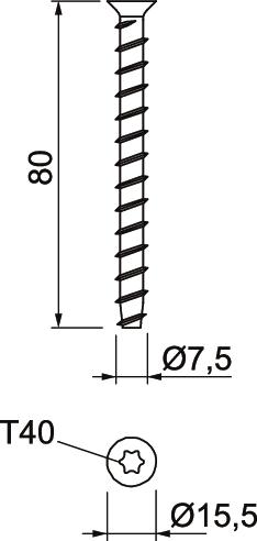Color zinc Diámetro de la cabeza 15,5 mm Diámetro de rosca ST 7,5 Diámetro del orificio mín. 6 mm Dimensión 7,5x80 Forma de la cabeza Cabeza avellanada Longitud 80 mm Longitud del taco 80 mm Material Acero Medida L 80 mm Modelo de tacos / clavos / tornillos Taco espiral Sistema roscado Torx Superficie Galvanizado Tamaño 7,5x80 - Todos los tipos
