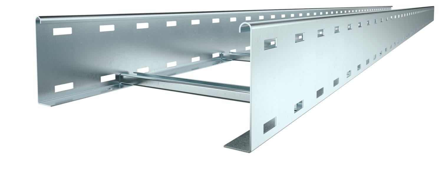 Descripción de productoBandeja de escalera con barra lateral perforada de ala 110 mm con peldaños de perfil en C abiertos hacia arriba, remachados.