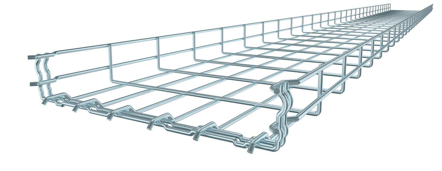 Para la bandeja de rejilla no se necesita ningún tipo de unión, simplemente se engancha un tramo con otro. El ancho de malla es de 50 x 100 mm (excepción GRM 55/50 = 20 x 100 mm).