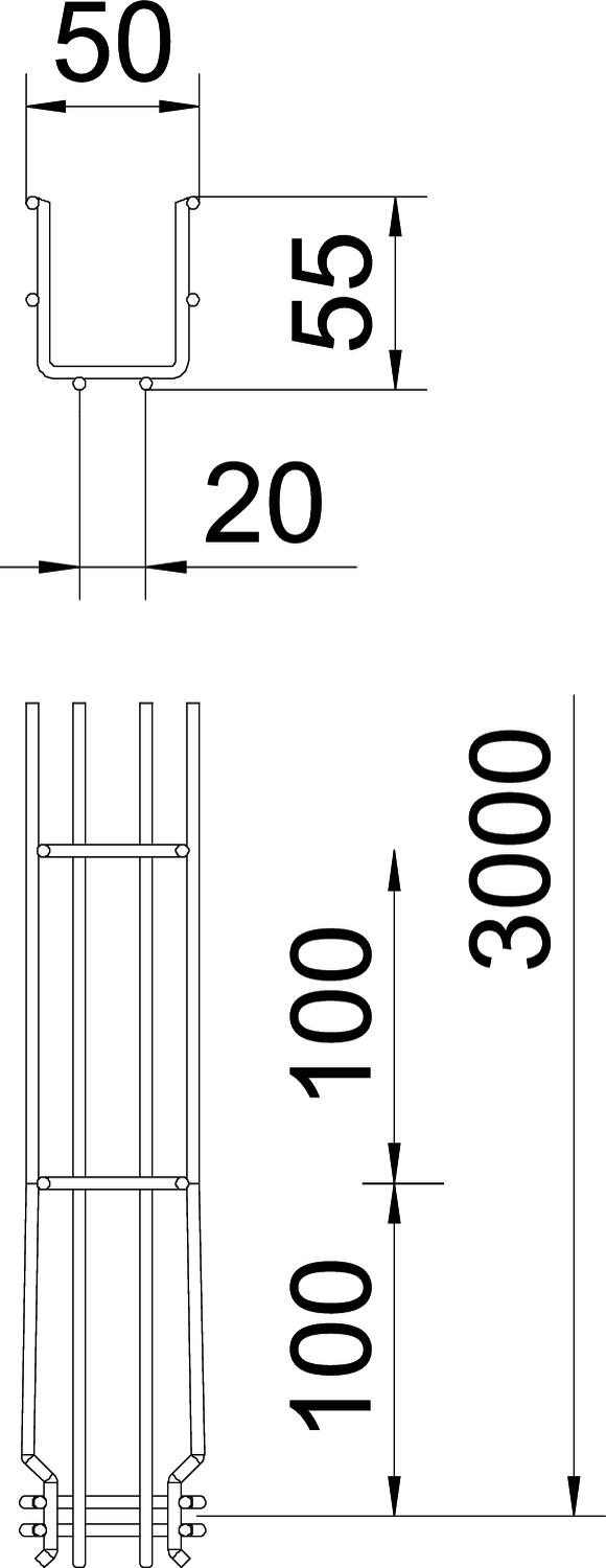 Para la bandeja de rejilla no se necesita ningún tipo de unión, simplemente se engancha un tramo con otro. El ancho de malla es de 50 x 100 mm (excepción GRM 55/50 = 20 x 100 mm).