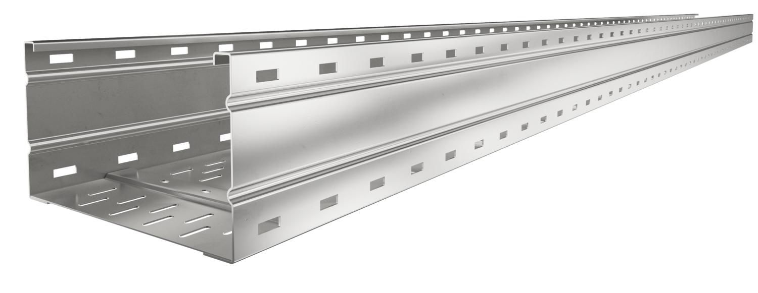 Descripción de productoSistema de bandejas portacables vano ancho, perforado, de ala 160 mm.