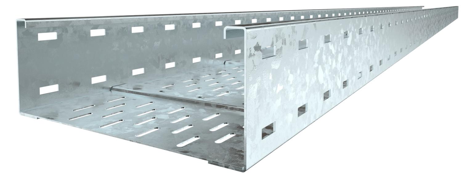 Descripción de productoSistema de bandejas portacables de amplios vanos, perforado, de ala 110 mm.