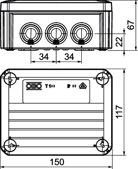 Descripción de productoCaja de derivación para la conexión de cables y líneas en zonas interiores y zonas exteriores protegidas. Forma rectangular con juntas insertables en los lados y entradas ciegas en el suelo. Apropiado para el montaje en pared y techo, y el montaje en estructuras de chapa. Con la posibilidad de fijación interior y montaje mediante cúpulas esquineras. Tapa con cierre rápido, precintable. Fabricada con materiales libres de halógenos y resistentes a los rayos UV.
