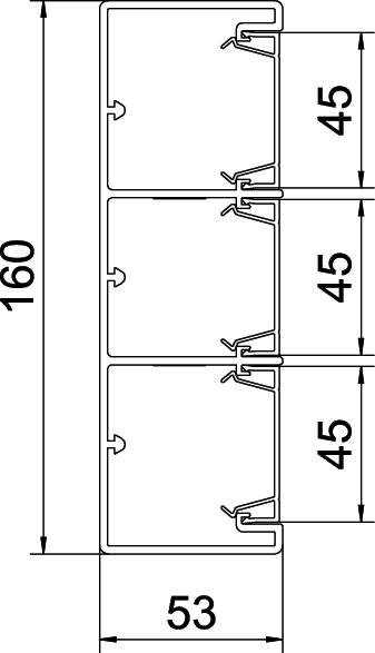 Altura 53 mm Ancho 160 mm Ancho de la parte superior 45 mm Ancho de la parte superior 2 45 mm Ancho de la parte superior 3 45 mm Clase de protección IP30 Color blanco puro; RAL 9010 Conector para canal no Dimensión 53x160x2000 Forma rectangular sí Grado de protección código IK IK08 Hoja protectora sí Huella de CO2 (GWP) Cradle-to-Gate 4,1267 kg CO2e / 1 Metro Libre de halógenos no Longitud 2000 mm Material Cloruro de polivinilo Modelo pared posterior (interior) Otros perfiles continuos Número de paredes separadoras de quita y pon 3 Número de tapas 3 Orificios de la base con orificios en la base Perforación de montaje en el suelo sí Rango de temperatura -15 °C Rango de temperatura máx. 60 °C Retenedor para cable no Sección efectiva 6480 mm² Simétrico sí Tapa suministrada sí Tipo de montaje de las tapas interior Tratamiento antibacteriano no - Todos los tipos