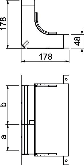 Descripción de productoCodo vertical (2 compartimentos) para el cambio de dirección vertical de canales de instalación bajo suelo empotrados (conexiones de pared, alimentaciones).