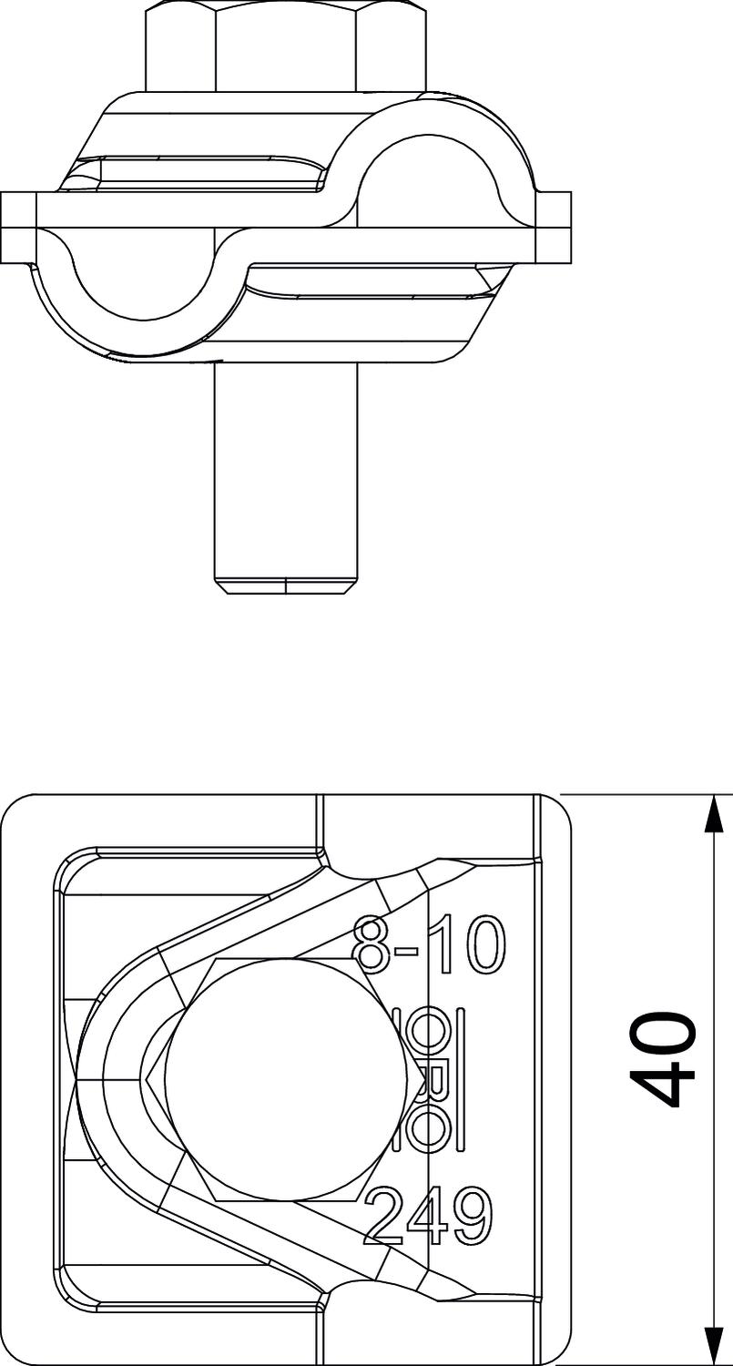 Ancho Rd 8-10 mm Aplicación TBS Sistema de conexión Apropiado para conexión Conductor redondo Rd 8-10 / Rd 8-10 Conducción de corriente de rayo H/100 kA Conexión Conductor redondo* Corriente de cortocircuito (50 HZ)(1 s;≤300 °C) 1,4 kA Diámetro de conductor redondo conductor 1 máx. 10 mm Diámetro de conductor redondo conductor 1 mín. 8 mm Diámetro de conductor redondo conductor 2 máx. 10 mm Diámetro de conductor redondo conductor 2 mín. 8 mm Dimensión 40x40mm Huella de CO2 (GWP) Cradle-to-Gate 0,6844 kg CO2e / 1 Unidad Longitud 40 mm Material Acero inoxidable 1.4571/1.4404 Medida A 40 mm Placa intermedia no Tipo de conector Borne de unión multifuncional Tipo de tornillo de fijación Tornillo de cabeza hexagonal - Todos los tipos