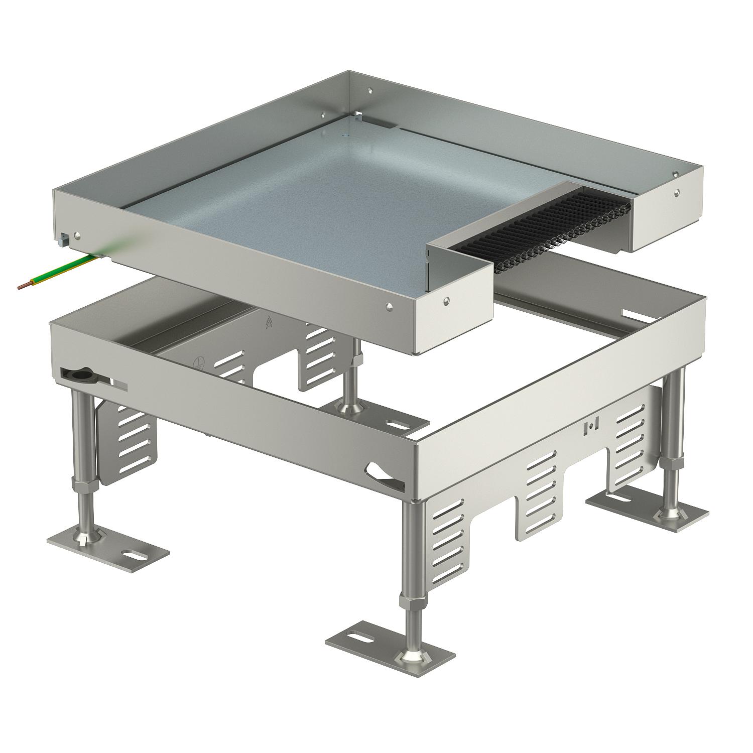 Descripción de productoTapa y marco con altura regulable de tamaño 9 con salida para cables. Apropiados para el montaje de mecanismos en pavimentos que precisan una limpieza en seco.