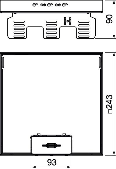 Caja nivelable y desacoplada del suelo del tamaño nominal 9, con salida de cable, para el montaje de sistemas de instalación en suelos que requieren limpieza en seco en zonas interiores, para el montaje en cajas bajo suelo UZD250 o UZD350, cada una en combinación con una tapa de montaje DUG../9. El montaje se efectúa mediante un ángulo de nivelación (pedir por separado) en el perfil del marco de aluminio de las cajas bajo suelo.