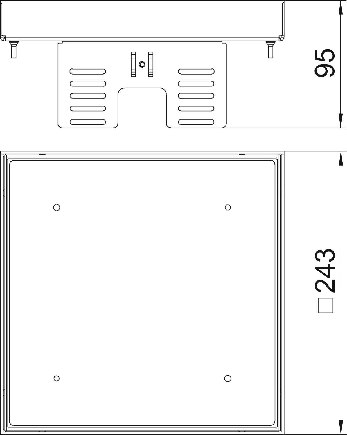 Descripción de productoCaja de nivelación "ciega", desacoplada del suelo, para crear una abertura de inspección de tamaño nominal 9 en suelos secos o húmedos en interiores, para instalación en cajas bajo suelo UZD250 o UZD350, en cada caso en combinación con una tapa de montaje DUG./9 o en UGD250-3/9 o UGD350-3/9. El montaje se efectúa mediante un ángulo de nivelación (pedir por separado) en el perfil del marco de aluminio de las cajas bajo suelo. Sólo son apropiados para pavimentos pulidos.