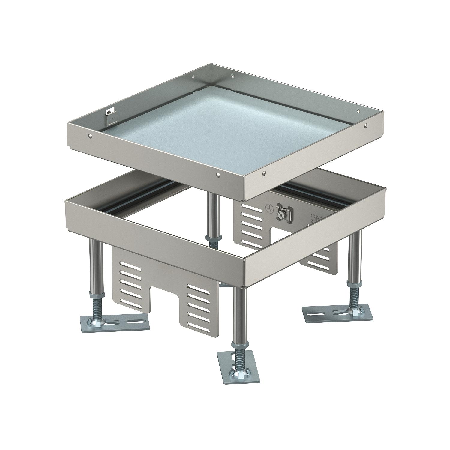 Descripción de productoConjunto de tapa y marco cuadrado "ciego" de altura regulable para crear una abertura de inspección de tamaño nominal 4. Montaje en sistemas de canalización, suelos dobles y huecos en suelos limpiados en seco o en húmedo en interiores. Sólo son apropiados para pavimentos pulidos. Clase de protección: IP X5.