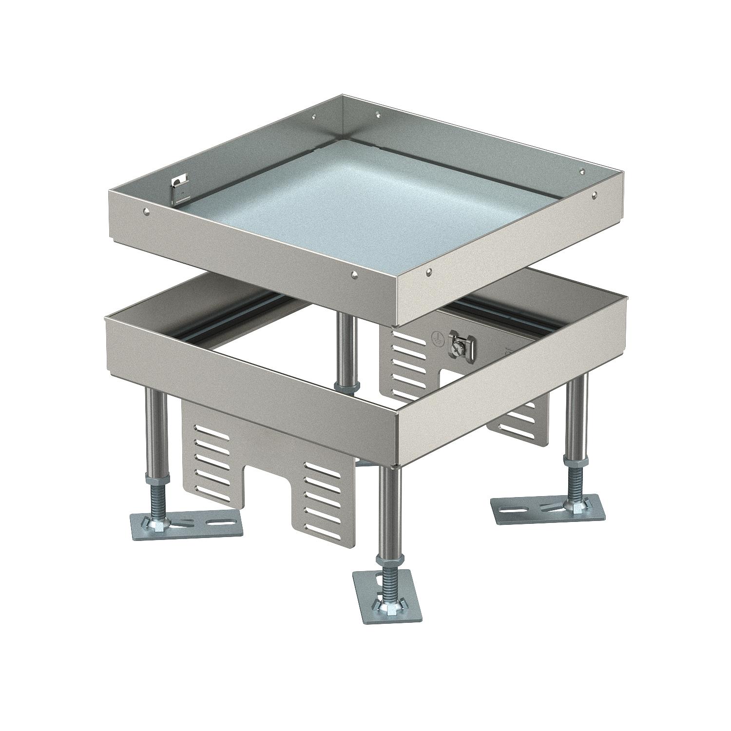 Descripción de productoConjunto de tapa y marco cuadrado "ciego" de altura regulable para crear una abertura de inspección de tamaño nominal 4. Montaje en sistemas de canalización, suelos dobles y huecos en suelos limpiados en seco o en húmedo en interiores. Sólo son apropiados para pavimentos pulidos. Clase de protección: IP X5.