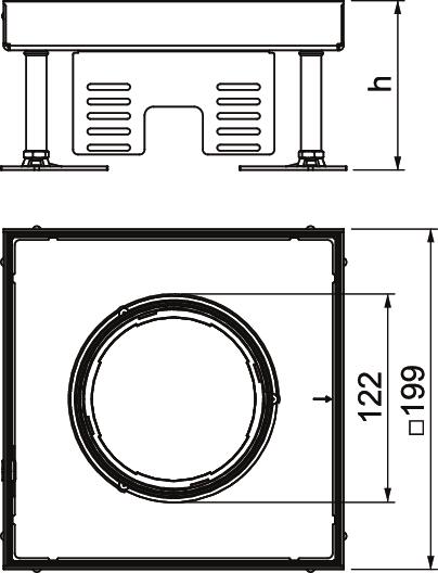 Descripción de productoConjunto de tapa y marco cuadrado de altura regulable para tubos de tamaño nominal 4 para montar dispositivos de instalación en sistemas de canalización, suelos dobles y huecos en suelos limpiados en seco o en húmedo en interiores. Clase de protección: IP X5.