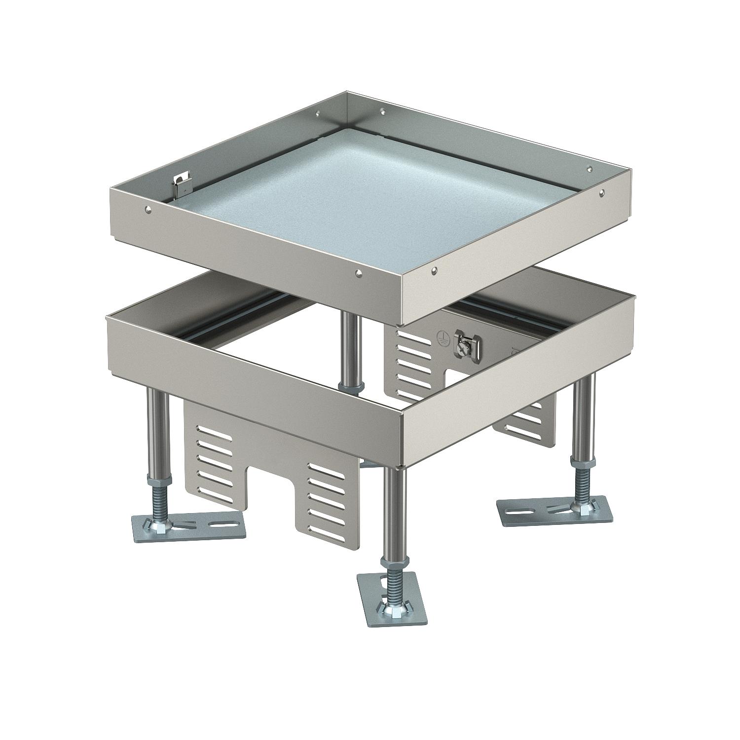 Descripción de productoConjunto de tapa y marco cuadrado de altura regulable y alta resistencia "ciego" de tamaño nominal 4 para crear una abertura de inspección. Montaje en sistemas de canalización, suelos dobles y huecos en suelos limpiados en seco o en húmedo en interiores. Clase de carga 1 a 10 kN. Sólo son apropiados para pavimentos pulidos.