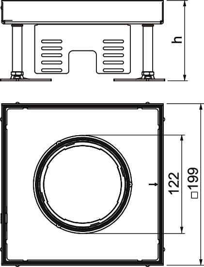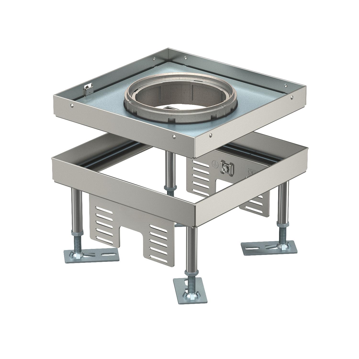 Descripción de productoConjunto de tapa y marco cuadrado de altura regulable y alta resistencia para tubos de tamaño nominal 4 para montar dispositivos de instalación en sistemas de canalización, suelos dobles y huecos en suelos limpiados en seco o en húmedo en interiores. Clase de carga 1 a 10 kN.