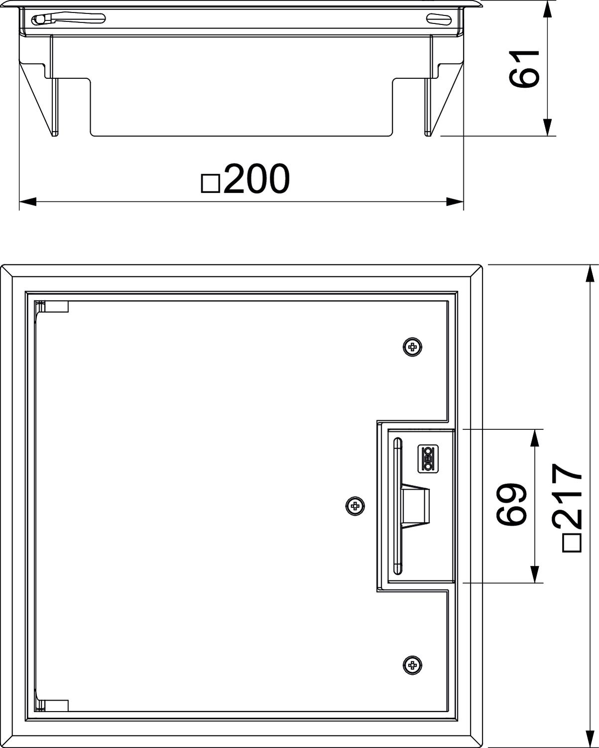 Conjunto portamecanismos con asidero, 2 compartimentos, cubeta MT4. Pueden instalarse 2 tapas ciegas APMT2.