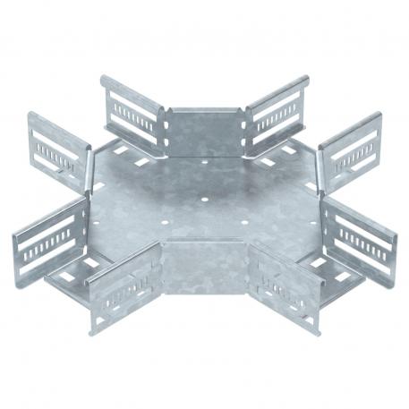 Descripción de productoCruce para establecer una derivación horizontal, accesorio para bandejas portacables encajables y atornillables con ala de 60 mm. Montaje sin tornillos con abrazaderas dobles o unión atornillada con tornillos redondos planos FRS y tuercas combinadas M6. De uso en interiores y exteriores. El material de fijación se debe pedir por separado.