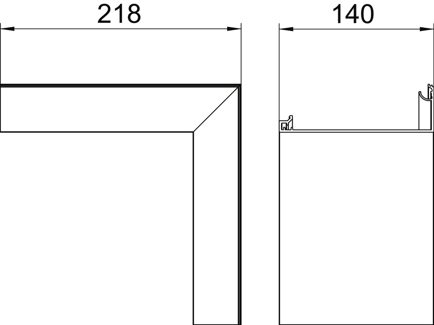 Altura 44 mm Ancho 140 mm Ángulo máx. 90 mm Ángulo mín. 90 mm Color aluminio Conector para canal no Dimensión 44x140x218 Ejecución Asimétrico Hoja protectora sí Huella de CO2 (GWP) Cradle-to-Gate 7,9824 kg CO2e / 1 Unidad Libre de halógenos sí Longitud 218 mm Material Aluminio Perforación de montaje en el suelo no Retenedor para cable no Superficie Anodizado Tipo de montaje de las tapas general Versión Otros - Todos los tipos